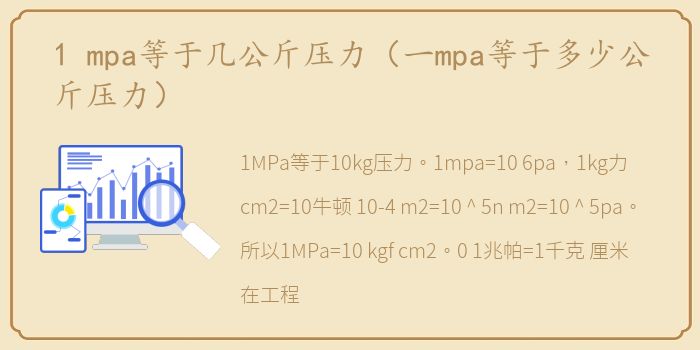 1MPa等于10kg压力。1mpa=10 6pa,1kg力/cm2=10牛顿/10-4 m2=10 ^ 5n/m2=10 ^ 5pa。所以1MPa=10 kgf/cm2。