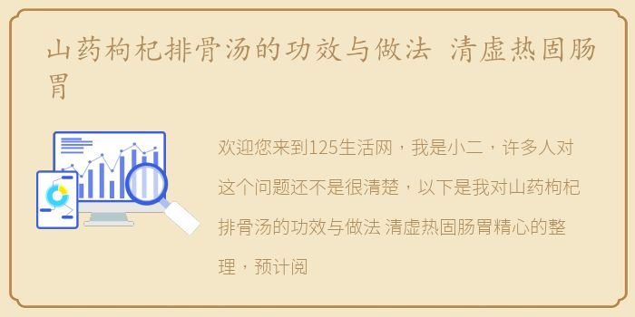 欢迎您来到125生活网,我是小二,许多人对这个问题还不是很清楚,以下是我对山药枸杞排骨汤的功效与做法 清虚热固肠胃精心的整理,预计阅读1分钟。
