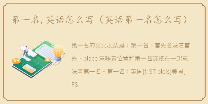 第一名的英文表达是:第一名。首先意味着首先,place 意味着位置和第一名连接在一起意味着第一名。
