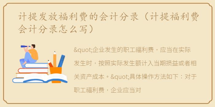 "企业发生的职工福利费,应当在实际发生时,按照实际发生额计入当期损益或者相关资产成本。"具体操作方法如下:对于职工福利费,企业应当对应当计入职工福利费的金额进行估计根据历史经验数据和当前福利计划确定的当前期间的工资;企业应当在每个资产负债表日对福利费的实际金额和预计金额进行调整。