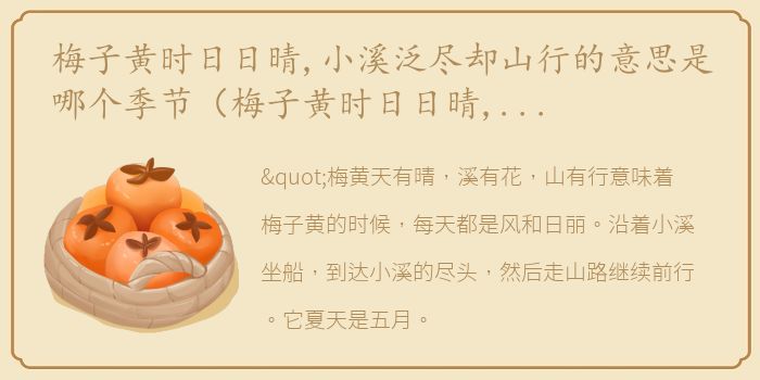 "梅黄天有晴,溪有花,山有行意味着梅子黄的时候,每天都是风和日丽。沿着小溪坐船,到达小溪的尽头,然后走山路继续前行。它夏天是五月。