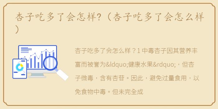 杏子吃多了会怎么样?1.中毒杏子因其营养丰富而被誉为“健康水果”,但杏子微毒,含有杏苷。因此,避免过量食用,以免食物中毒。