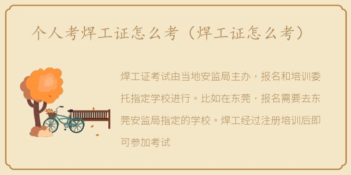 焊工证考试由当地安监局主办,报名和培训委托指定学校进行。比如在东莞,报名需要去东莞安监局指定的学校。焊工经过注册培训后即可参加考试,对于没有时间参加培训的焊工可以做特殊安排。