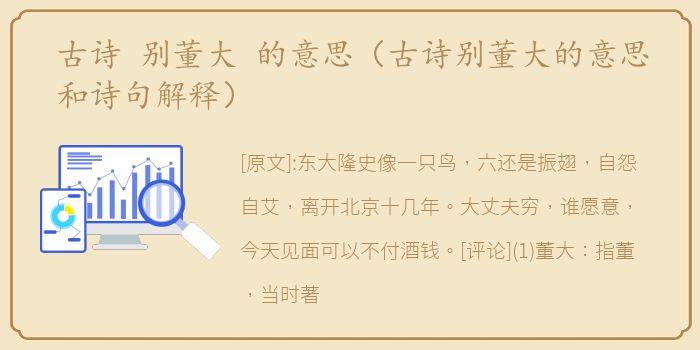 (1)董大:指董,当时著名的音乐家。它在兄弟中排名第一,所以被称为东大。