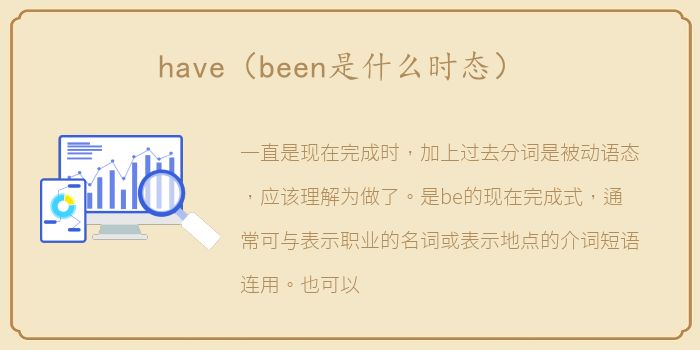 一直是现在完成时,加上过去分词是被动语态,应该理解为做了。是be的现在完成式,通常可与表示职业的名词或表示地点的介词短语连用。也可以和away、back等粒子一起使用。