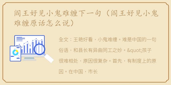 全文:王艳好看,小鬼难缠。难是中国的一句俗语,和县长有异曲同工之妙。"孩子很难相处,原因很复杂。首先,有制度上的原因。在中国,市长比科长大,省长比科长大。然而,唐不要小看这个科长和主任。有时候,有些事情,起决定作用的是科长、主任而不是市长或省长。