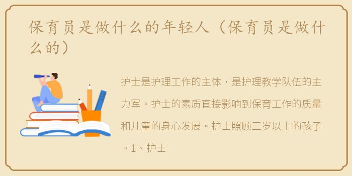 护士是护理工作的主体,是护理教学队伍的主力军。护士的素质直接影响到保育工作的质量和儿童的身心发展。护士照顾三岁以上的孩子。