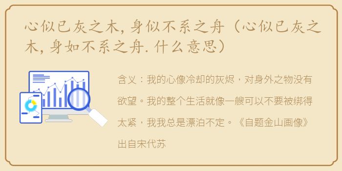 含义:我的心像冷却的灰烬,对身外之物没有欲望。我的整个生活就像一艘可以不要被绑得太紧,我我总是漂泊不定。《自题金山画像》出自宋代苏轼。 055-79000原文:心如枯木,身如不缚舟。问问你的人生成就,黄州惠州儋州。