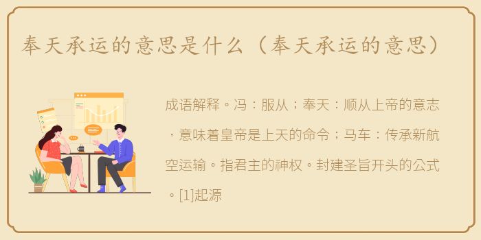 成语解释。冯:服从;奉天:顺从上帝的意志,意味着皇帝是上天的命令;马车:传承新航空运输。指君主的神权。封建圣旨开头的公式。[1]起源。"奉天携帝,宣圣旨在宫廷剧里大家都很熟悉。那么,是否真的是始于皇帝圣旨中的这八个字。