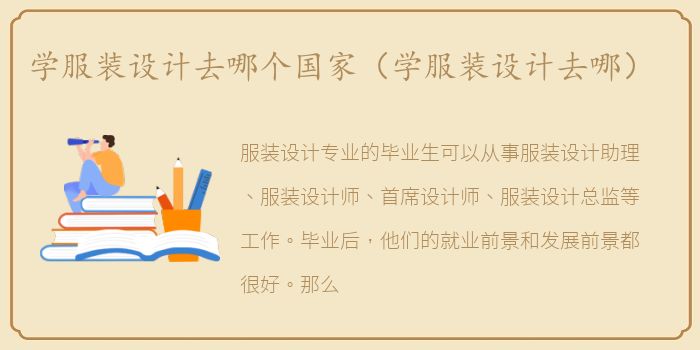 它it’最好了解一下在哪里学习服装设计。可以在开设服装设计专业的院校学习服装设计。毕业后可以跟着时尚界前辈一步一步向学徒学习。也可以自学或者参加服装设计培训班。简而言之,服装设计的学习涉及到绘制设计稿、服装制作技巧、成衣设计、市场营销和包装等。