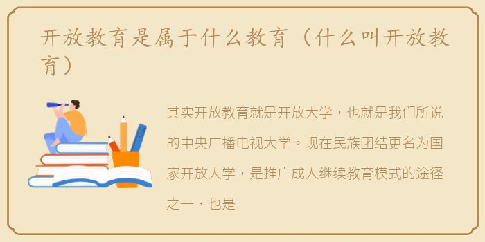 其实开放教育就是开放大学,也就是我们所说的中央广播电视大学。现在民族团结更名为国家开放大学,是推广成人继续教育模式的途径之一,也是国家认可,全国认可的。
