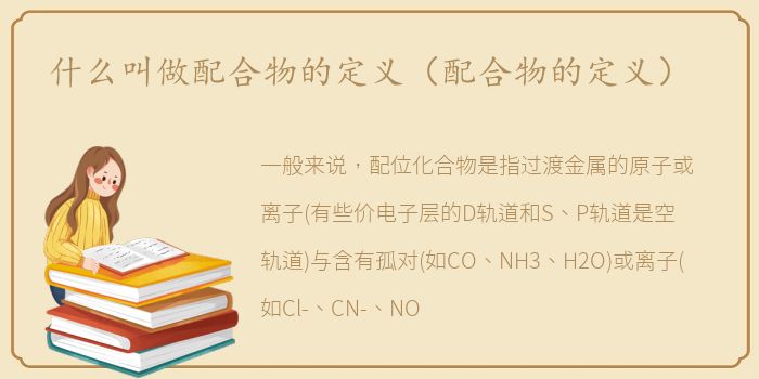 一般来说,配位化合物是指过渡金属的原子或离子(有些价电子层的D轨道和S、P轨道是空轨道)与含有孤对(如CO、NH3、H2O)或离子(如Cl-、CN-、NO2-等)的分子结合形成的化合物。)通过配位键。