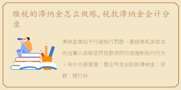 滞纳金类似于行政执行罚款,是税务机关依法向当事人收取惩罚性款项的行政强制执行行为。会计分录是借:营业外支出——滞纳金;贷款:银行存款。