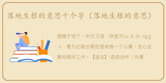 根植于地下,中文习语,拼音为Lu d sh ng g n,意为比喻长期定居或做一个认真、全心全意地做好工作。【语法】:连续动作;作谓语和宾语;用来确认意思。