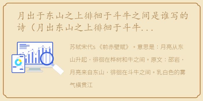 苏轼宋代s 《前赤壁赋》。意思是:月亮从东山升起,徘徊在桦树和牛之间。原文:邵岩,月亮来自东山,徘徊在斗牛之间。乳白色的雾气横贯江面,碧水连天。让小船漂浮在茫无边际的江面上,越过浩瀚无垠的江面。它和冯旭一样大的风,但我不我不知道如何阻止它。它像世界一样独立的遗产,它出现并成为不朽。