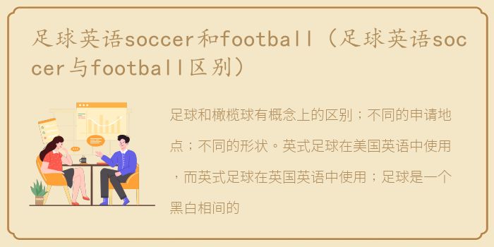 足球和橄榄球有概念上的区别;不同的申请地点;不同的形状。英式足球在美国英语中使用,而英式足球在英国英语中使用;足球是一个黑白相间的球体。足球的形状是椭球形,与足球的球形不同,所以也增加了球滚动时的不确定性。