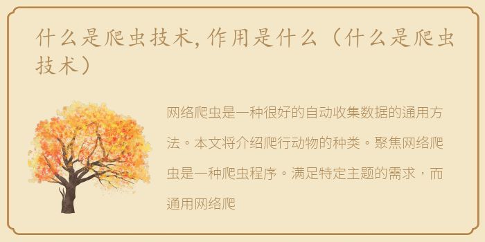 网络爬虫是一种很好的自动收集数据的通用方法。本文将介绍爬行动物的种类。