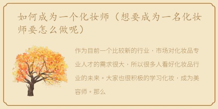 作为目前一个比较新的行业,市场对化妆品专业人才的需求很大,所以很多人看好化妆品行业的未来。大家也很积极的学习化妆,成为美容师。那么要成为美容师应该怎么做呢?我下面我来告诉你。