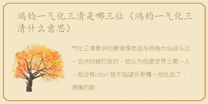 气化三清是洪钧夏侯惇老祖与杨梅大仙战斗过。当洪钧被打败时,他认为他是世界上第一人。我没有I don’我不指望会更糟。他吐血了,满嘴的薛婧变成了三清。三清源道教是指玉清、上清、太清三神,统称为太清道德神大红天,或简称道德神,也被称为太上老君。他们是道教崇拜的第一个至高神。