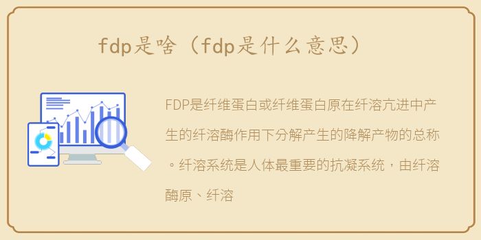 FDP是纤维蛋白或纤维蛋白原在纤溶亢进中产生的纤溶酶作用下分解产生的降解产物的总称。纤溶系统是人体最重要的抗凝系统,由纤溶酶原、纤溶酶原激活剂、纤溶酶和纤溶酶抑制物四种主要成分组成。