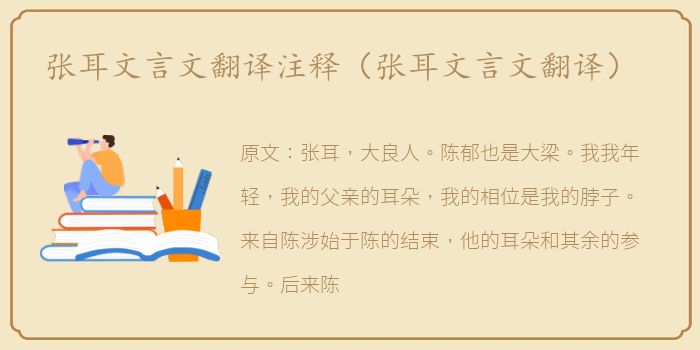 张耳,大良人。陈郁也是大梁。我我年轻,我的父亲的耳朵,我的相位是我的脖子。来自陈涉始于陈的结束,他的耳朵和其余的参与。后来陈立为王。以陈武为将军,二玉为左右队长,引兵三千,从白马渡河。至各县,赵十余城皆在下,其余皆在莫肯之下。他带领他的部队向东北进攻杨帆。