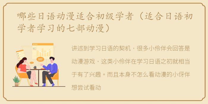 以上是推荐给初学者的日本动漫。当然,你可以在日语学习的后期尝试日剧纪录片来提高你的日语水平。