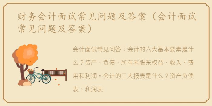 会计面试常见问答:会计的六大基本要素是什么?资产、负债、所有者股东权益、收入、费用和利润。会计的三大报表是什么?资产负债表、利润表(也叫损益表)、现金流量表等。会计面试中的禁忌:don 不要迟到,注意你整洁的衣服;唐不要伪造你的简历和经历等。
