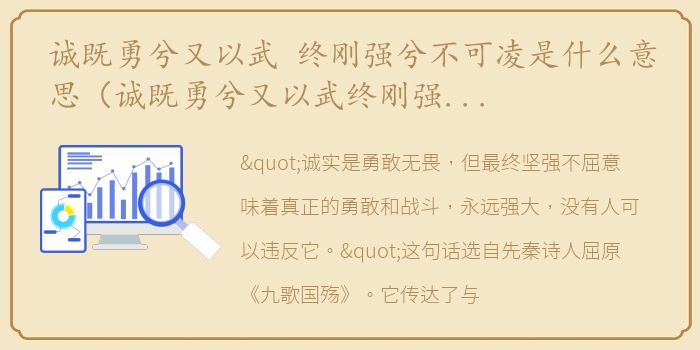 "诚实是勇敢无畏,但最终坚强不屈意味着真正的勇敢和战斗,永远强大,没有人可以违反它。"这句话选自先秦诗人屈原《九歌国殇》。它传达了与被反映人员相一致的凛然直爽之美,一种阳刚之美,这在楚辞作品中是绝无仅有的,读之确实让人感到强烈和繁华。