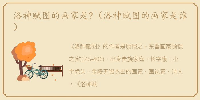 《洛神赋图》的作者是顾恺之。东晋画家顾恺之(约345-406),出身贵族家庭,长字康,小字虎头。金陵无锡杰出的画家、画论家、诗人。