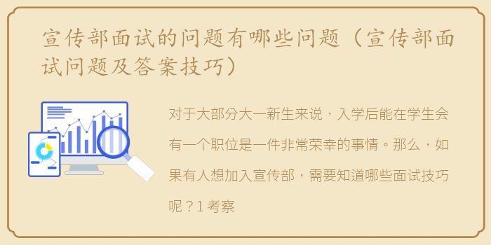 对于大部分大一新生来说,入学后能在学生会有一个职位是一件非常荣幸的事情。那么,如果有人想加入宣传部,需要知道哪些面试技巧呢?