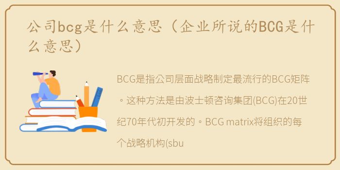 BCG是指公司层面战略制定最流行的BCG矩阵。这种方法是由波士顿咨询集团(BCG)在20世纪70年代初开发的。BCG matrix将组织的每个战略机构(sbu)标记在二维矩阵图上,从而显示哪些sbu提供了高潜在收入,哪些sbu是组织资源的漏斗。