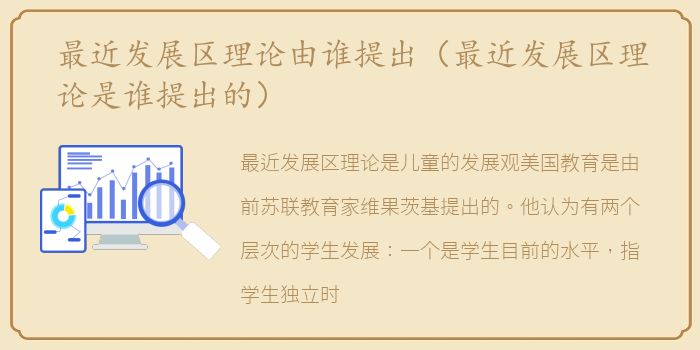 最近发展区理论是儿童的发展观美国教育是由前苏联教育家维果茨基提出的。他认为有两个层次的学生发展:一个是学生目前的水平,指学生独立时所能达到的解题水平;另一个是学生可能的发展水平,即通过教学获得的潜力。两者的区别在于最近发展的区域。