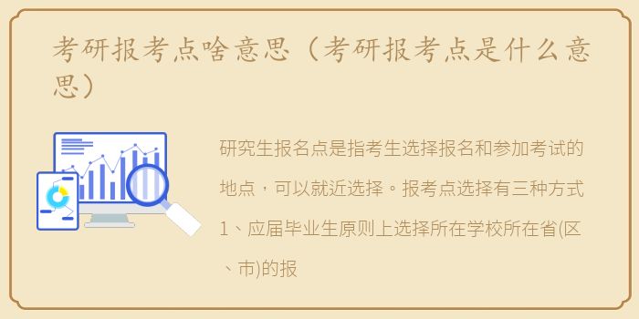 研究生报名点是指考生选择报名和参加考试的地点,可以就近选择。报考点选择有三种方式1、应届毕业生原则上选择所在学校所在省(区、市)的报考点办理网上报名和现场确认手续;比如,考生A是河北大学应届毕业生,打算考北京大学,那么他可以选择河北省而不是北京大学。