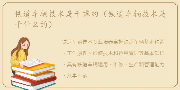 铁道车辆技术专业培养掌握铁道车辆基本构造、工作原理、维修技术和运用管理等基本知识,具有铁道车辆运用、维修、生产和管理能力,从事车辆钳工、货车检验、车辆电工、制动钳工等工作的高素质技术技能人才。
