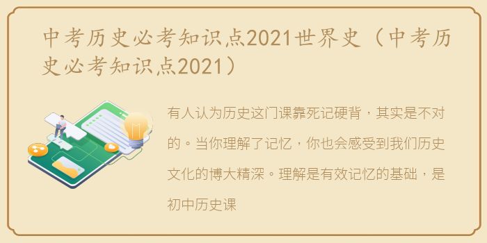 有人认为历史这门课靠死记硬背,其实是不对的。当你理解了记忆,你也会感受到我们历史文化的博大精深。理解是有效记忆的基础,是初中历史课中正确运用知识解题的前提。
