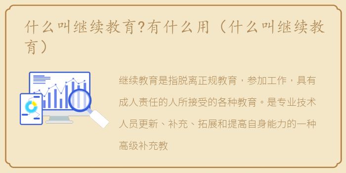 继续教育是指脱离正规教育,参加工作,具有成人责任的人所接受的各种教育。是专业技术人员更新、补充、拓展和提高自身能力的一种高级补充教育。继续教育是学校教育之外的面向全体社会成员特别是成年人的教育活动,是终身学习体系的重要组成部分。