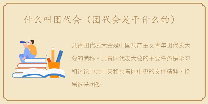 共青团代表大会是中国共产主义青年团代表大会的简称。共青团代表大会的主要任务是学习和讨论中共中央和共青团中央的文件精神,换届选举团委委员。共青团代表大会是在特殊情况下每年定期或不定期召开的共青团员代表大会,从共青团中央到各级行政区域的各级地方团委,以及特定基层单位的共青团总支部委员会。