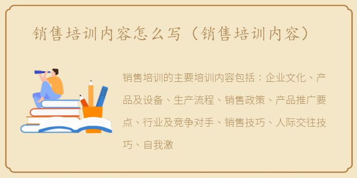 销售培训的主要培训内容包括:企业文化、产品及设备、生产流程、销售政策、产品推广要点、行业及竞争对手、销售技巧、人际交往技巧、自我激励等。这些内容必须得到市场部、培训部、人力资源部的同意,教材要共同编写。培训部的非核心属性决定了其从属地位,所以可以没有得到所有被重视和需要的资源。