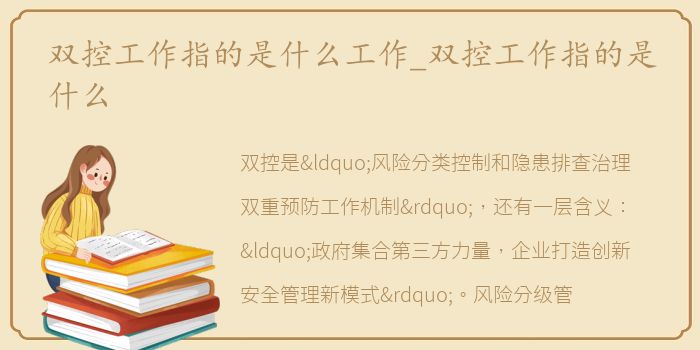 双控是“风险分类控制和隐患排查治理双重预防工作机制”,还有一层含义:“政府集合第三方力量,企业打造创新安全管理新模式”。