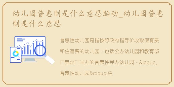 普惠性幼儿园是指按照政府指导价收取保育费和住宿费的幼儿园,包括公办幼儿园和教育部门等部门举办的普惠性民办幼儿园。“普惠性幼儿园”应具备以下特征:一是符合市教委规定的基本标准;二是面向社会公开招生;三是收费实行政府定价或政府指导价。
