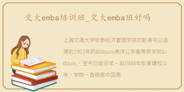 一、上海交大安泰经济管理学院EMBA简介2002年,上海交大安泰经济管理学院EMBA获国务院学位办批准,成为全国首批获批的EMBA教育项目。该项目秉承上海交通大学精神,以培养具有全球视野、战略思维、卓越领导力和社会责任感的领导者为目标,以“贡献管理智慧、培养贤能领袖、引领经济社会发展”为使命。