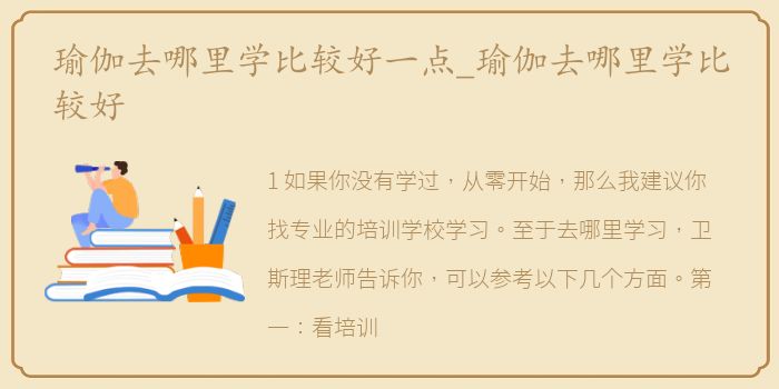 1.在选择培训机构的时候,一定要了解自己的老师。把授课老师的观察和瑜伽对你身体的改善做一个比较。比如我们常说瑜伽可以塑形,看老师的身材如何;瑜伽可以提升气质,看老师气质如何等等。如果一个教瑜伽的老师不能像我们想的那样体现瑜伽的外在效果,你可以自己判断是否要向他学习。另外,一定要和教你课程的老师谈谈。通过交谈,你可以判断他的价值观,他对瑜伽的了解以及老师的自我练习习惯,也可以知道你能从这个老师身上学到什么。这些都会影响你对瑜伽的理解和认知,也会成为你瑜伽路上的航标。
