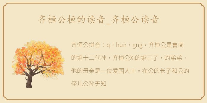 齐恒公拼音:q,hun,gng。齐桓公是鲁商的第十二代孙,齐桓公Xi的第三子,的弟弟,他的母亲是一位爱国人士。在公的长子和公的侄儿公孙无知者在齐国内乱中死去后,其子与公子九争夺皇位,成功后成为齐王。齐桓公以管仲为丞相,进行改革,实行军政合一、军民合一的制度,使齐国逐渐强大。