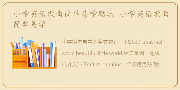 小学简单易学的英文歌有:it ' s sasmall world beautiful little world(经典童谣,翻译成外文)、TenLittleIndians十个印度男孩(歌词超级简单,学数数的时候学的)、row、Row、rowyourboat rocking(歌词超级简单,节奏很可爱)。