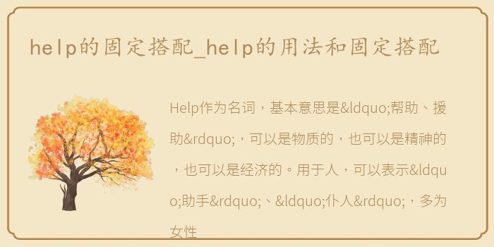 Help作为名词,基本意思是“帮助、援助”,可以是物质的,也可以是精神的,也可以是经济的。用于人,可以表示“助手”、“仆人”,多为女性。有时也可以指“补救、治疗”。固定与帮助自己,翻译为“自用;各取所需。”在的帮助下。