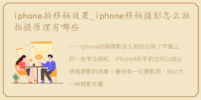 以上是如何拍摄iphone动轴摄影的介绍。这种镜头在拍摄时相当简单,但只能从较高的位置拍摄,这样拍出来的照片会更好看。