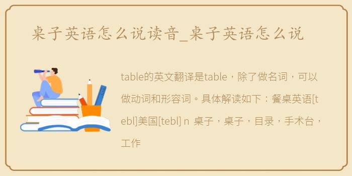 table的英文翻译是table,除了做名词,可以做动词和形容词。具体解读如下:餐桌英语[tebl]美国[tebl] n .桌子,桌子,目录,手术台,工作台,游戏桌vt。制表,搁置,嵌入,搁置。