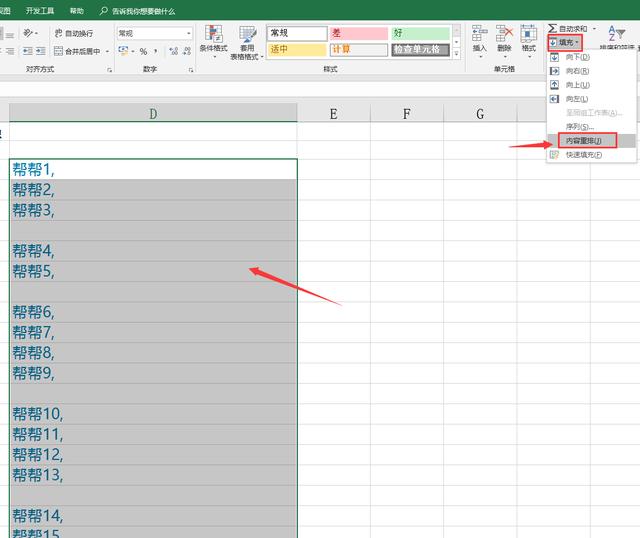 选择刚才=B2&","得含数列,拉宽(宽度一定要超过横向罗列的宽度),复制粘贴为值,破坏公式。