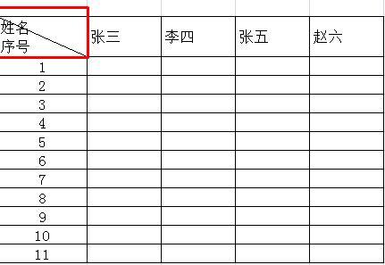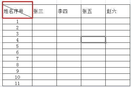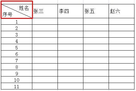 3.设置好斜线表头,在此表头中输入姓名和序号,但是会出现交叉问题,需要我们进一步调整。