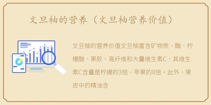 文旦柚的营养价值文旦柚富含矿物质、酶、柠檬酸、果胶、高纤维和大量维生素C,其维生素C含量是柠檬的3倍,苹果的8倍。此外,果皮中的精油含量是普通柑橘的4倍。